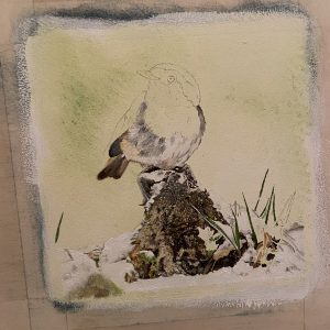 The images above show the progress of a Snow Leopard and Barn Owl* using coloured pastels (black and white in this instance).