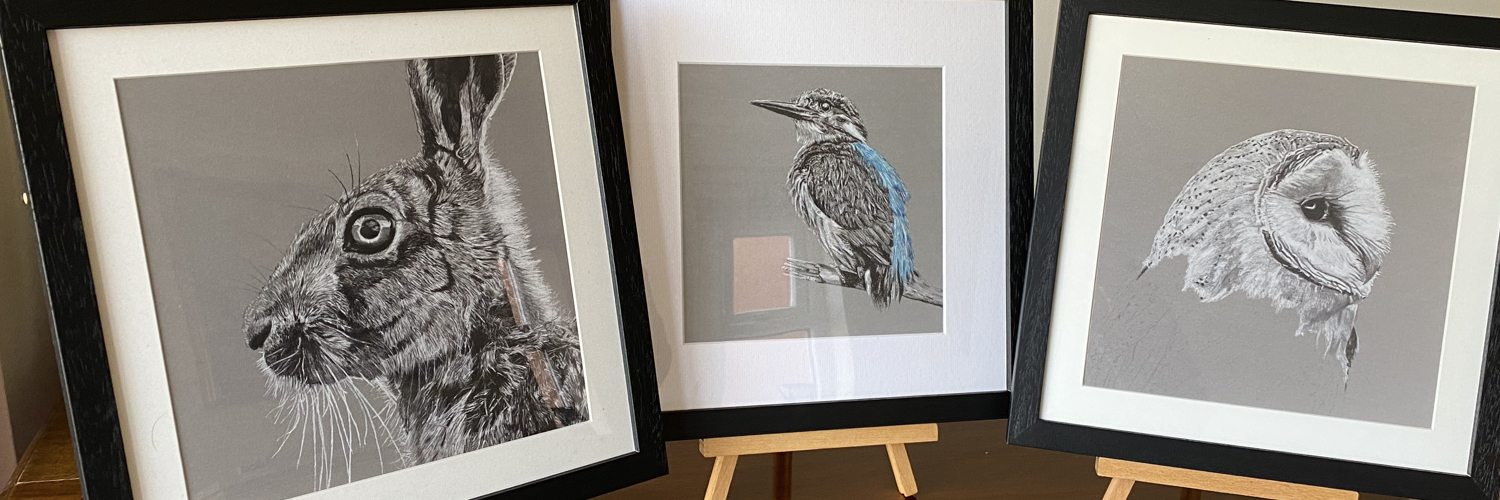 The Barn Owl, Kingfisher and Hare are available as prints including mount. The prints can also be framed upon request.